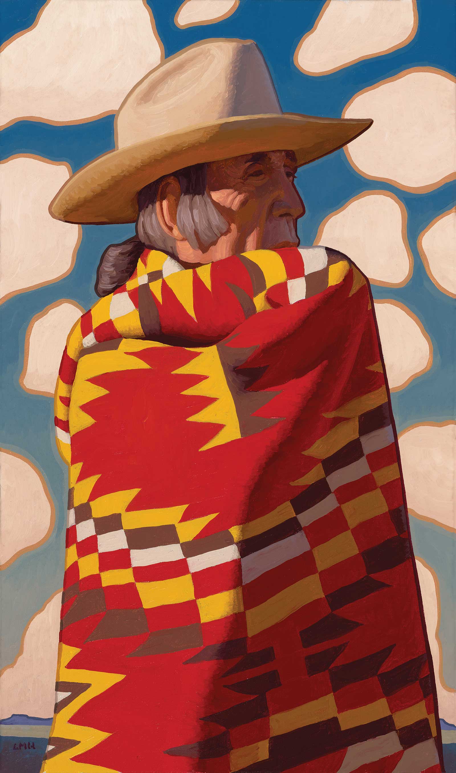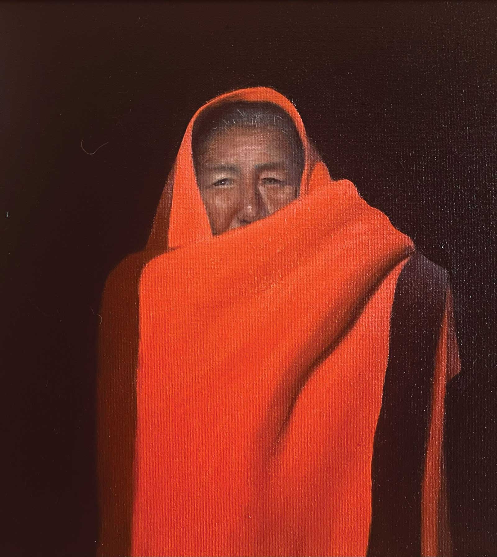 Another returning artist (although, they’re all returning artists) is Roseta Santiago, who will be bringing Desert Dweller, a painting of a blanket-clad figure, among other works. “Malcolm Gladwell’s philosophy in [his book] The Tipping Pointapplies to how I look at my work. I had a late start teaching myself oil painting in 2000 when I moved to Santa Fe to attempt a fine arts career in painting. Staying open and painting every day is a mantra that I stick to today,” she says. “My simplified version of the tipping point is to paint enough that I can master it—including the observation, thought processes and emotional filters. It is all a wonderful banquet of expression. Each time I paint, I see the effect of my journey and work. As in my previous careers, I knew if I applied myself that I could have this career. I am a good student and constantly observe the creative arts, gaining inspiration along the way. It has been and continues to be rewarding and the dream of my lifetime, knowing very well there is more to see. Coming out of my brush in the future. Staying curious and laser-focused is always my advice to myself and artists I mentor.”