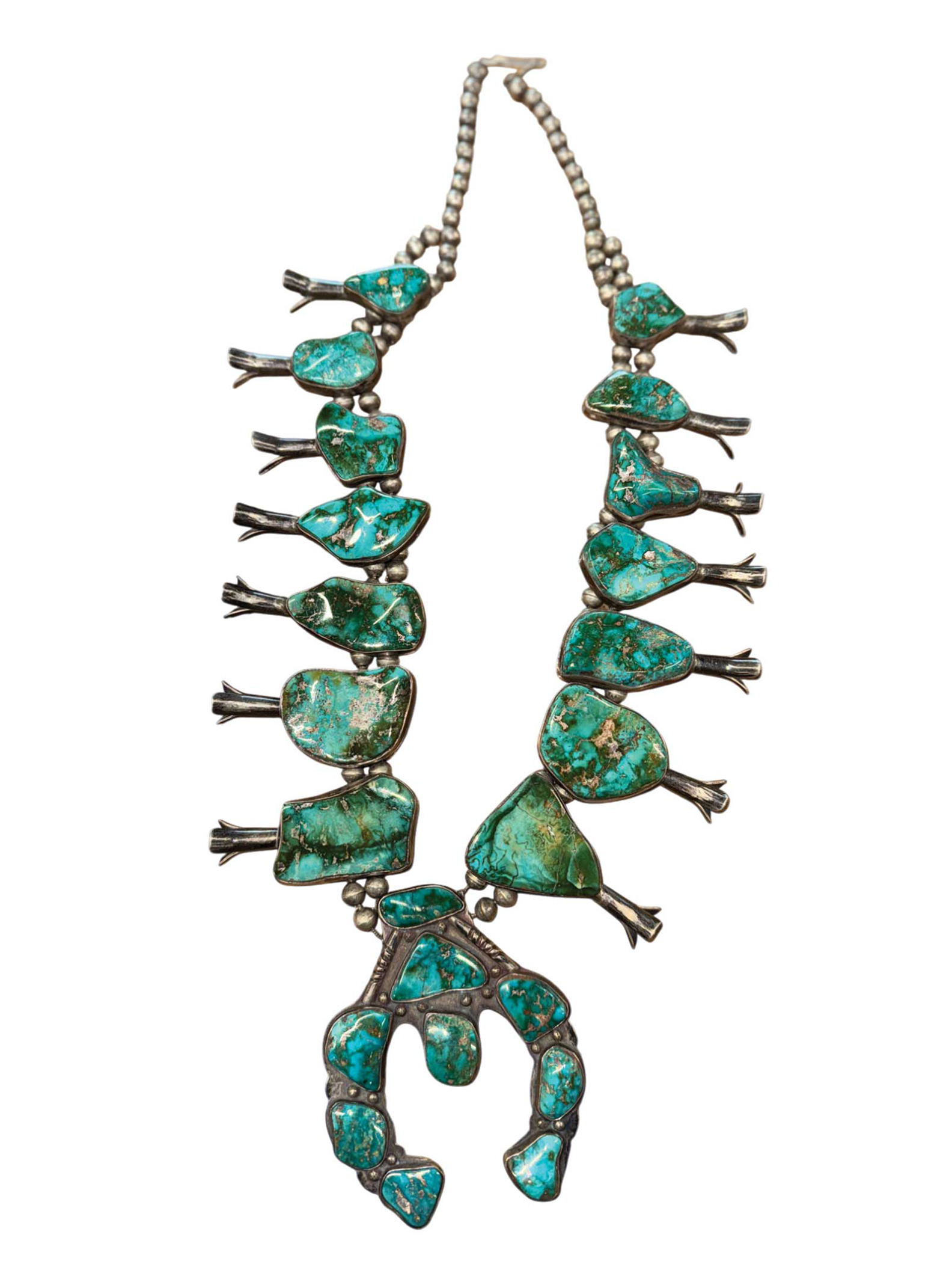 Mark Chee (Navajo (Diné), 1914-1981), turquoise and silver squash-blossom necklace, 27½ in. Estimate: $7,500/15,000