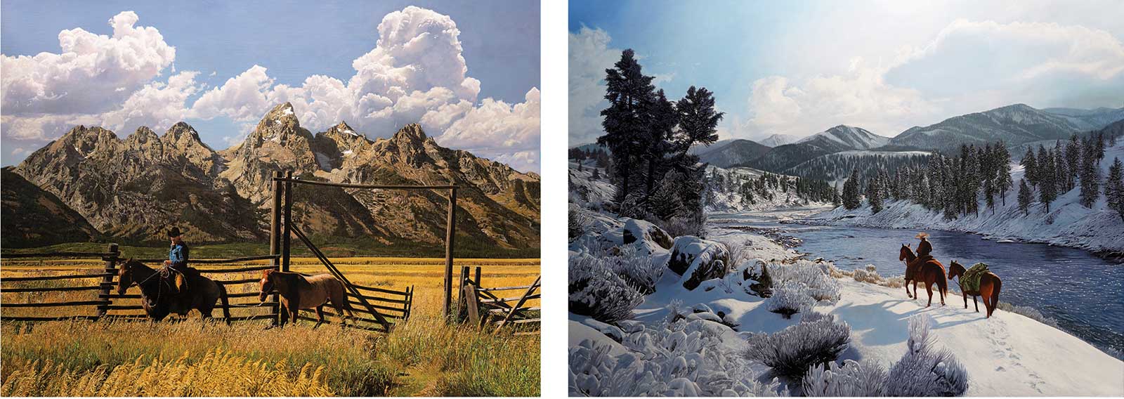 J Watson Fine Art, Teton Dreams, oil on canvas, 30 x 40 in., by John Bye; J Watson Fine Art, Winter in the West, oil on canvas, 30 x 40 in., by John Bye.