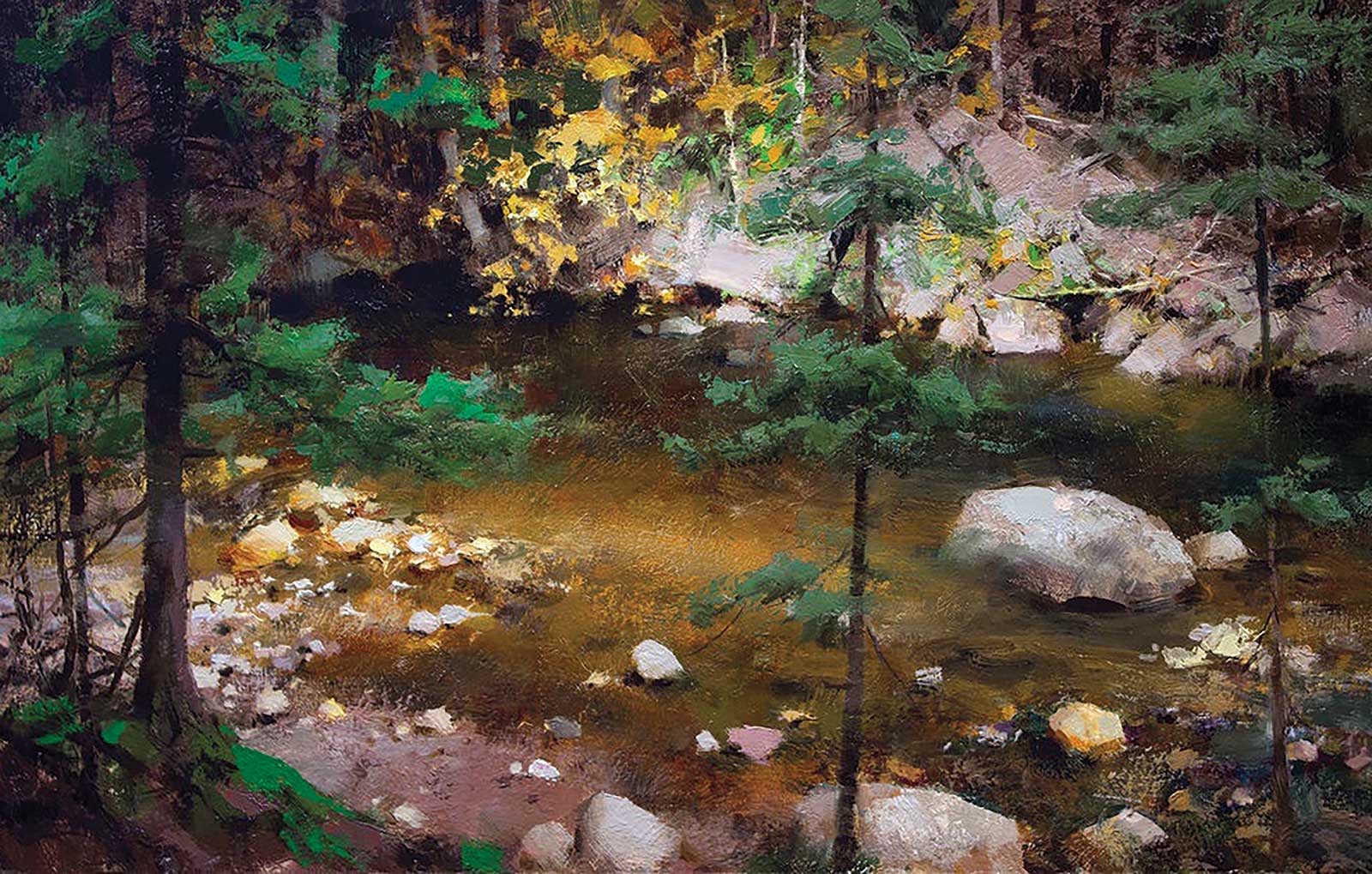 Legacy Gallery, West Running River, oil, 14 x 22 in., by Mark Boedges.
