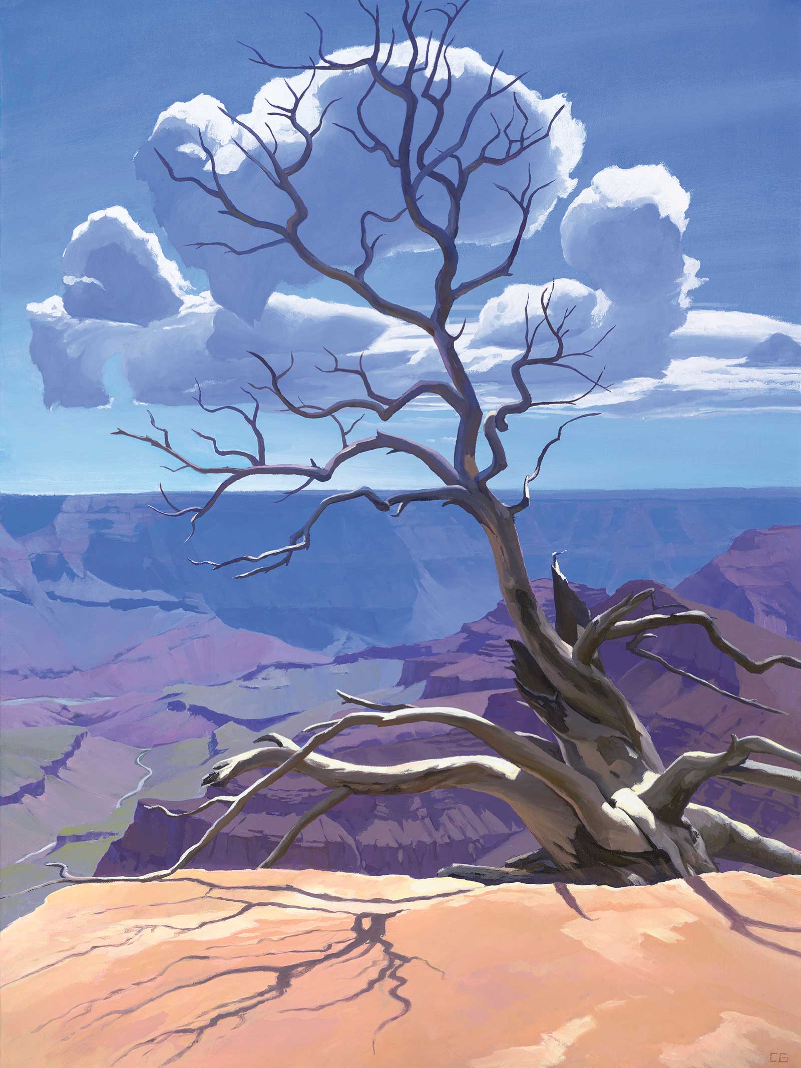 Find other impressive works like Eternal, by Corey Garman, who is inspired by the vast American West. “The land speaks to me through fleeting moments of light and weather, and I strive to capture its silent voice by painting them as a visual story,” says Garman. “My painting, Eternal,depicts the bleached skeleton of an ancient cedar tree, still clinging to the edge of the north rim of the Grand Canyon…When I happened upon it, the perfect combination of weather and light had given it the appearance of a living canopy of clouds.”