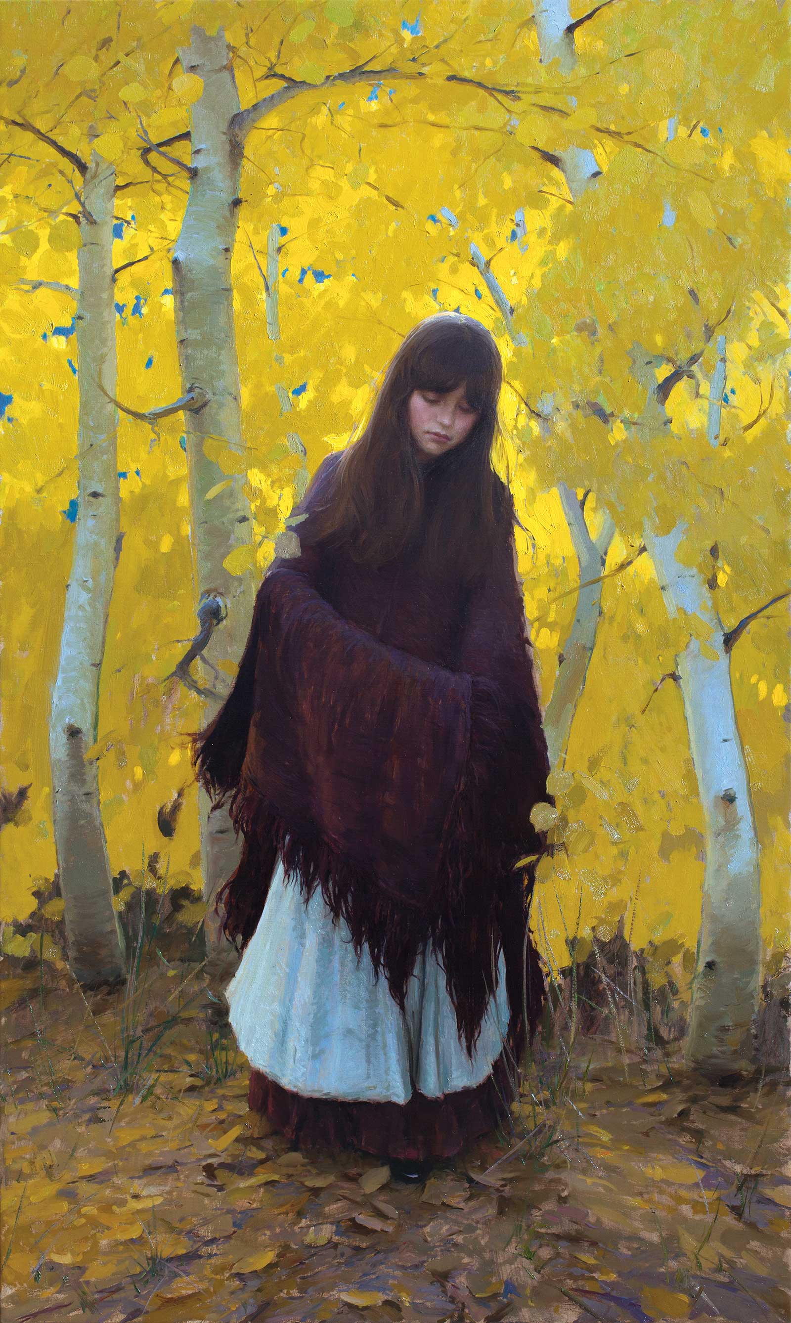 Fall Aspens, 2016, oil, 40 x 24 in. Collection of Laura Barletta at the New Salem Museum and Academy of Fine Art.