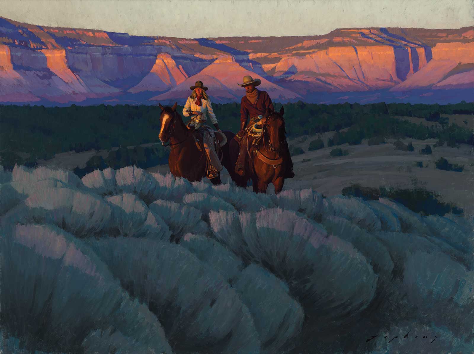 Riders Under Vermilion Cliffs, 2014, oil, 30 x 40 in. Collection of Michael and Judy Lombard, California.