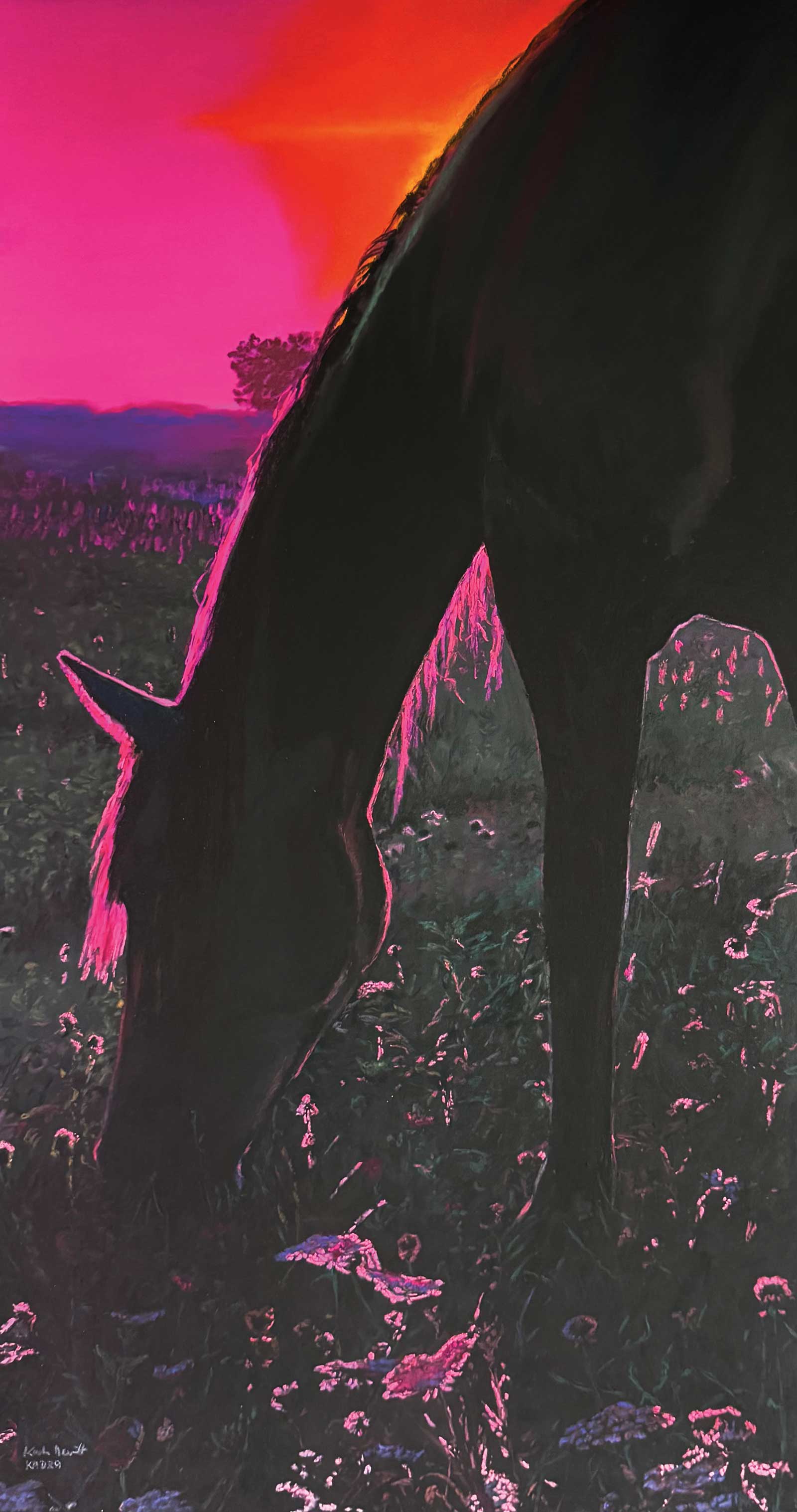 For Kansas-based artist Kadra Nevitt, anatomy is one of the most important things in equine art. “If something feels off, it usually is. Above all, look for a connection when collecting. Fads fade, but meaningful art holds true, always,” she says. “The world isn’t perfect. Tragedy comes often enough to unsettle even the calmest soul. Yet I see the moments. I feel them. A sunrise over golden Kansas fields. Horses grazing, their quiet rhythm slowing time itself. These moments are not rare, only overlooked. They live in the honest work, the stillness, the everyday. Through my work, I seek to hold them—to balance life’s rough edges with the steady light that still shines all around us.”